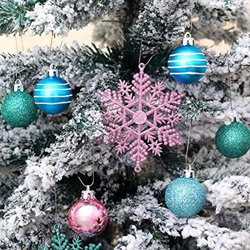 HXHN 24Pcs Silver Pink Christmas Ball Snowflake Pendant Set Snowflake Shaped Set Christmas Tree Hanging Ornament Decorations Ball Christmas Christmas Tree Decorations