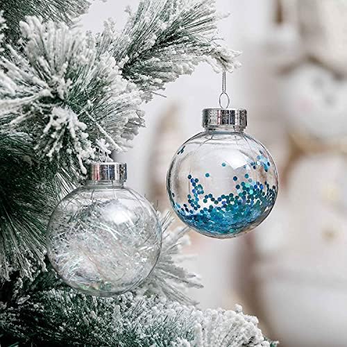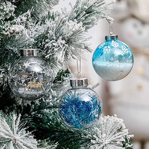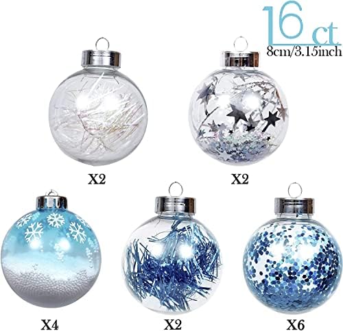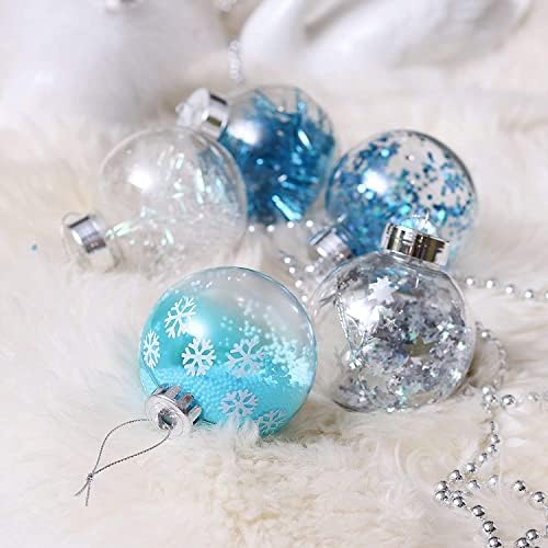 HZYDD Christmas Decoration, 80mm Transparent Christmas Ball Ornaments, Blue Silver Large Shatterproof Christmas Tree Ornaments, Christmas Home Decoration