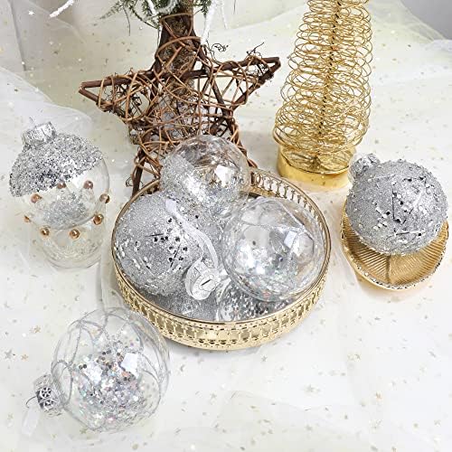 ISULIFE Christmas Ball Ornaments 80mm/3.15″ Shatterproof Clear Large Plastic Christmas Tree Decoration, Delicate Hanging Ornaments for Xmas Party, Wedding, Holiday and Home Décor(6ct,Silver)