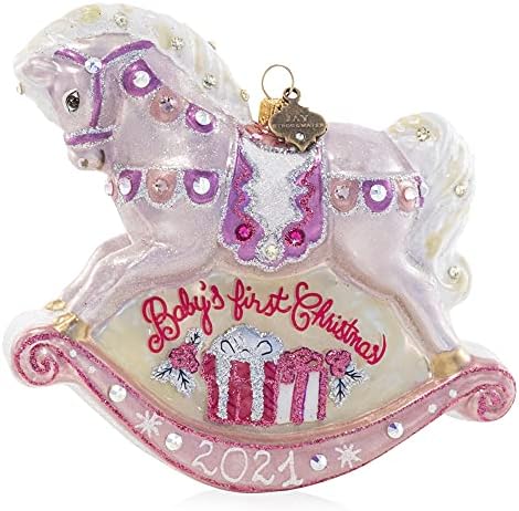 Jay Strongwater Baby’s First Rocking Horse Pink Glass Ornament, A Treasure for Generations