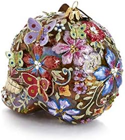 Jay Strongwater Skull with Butterflies Glass Ornament