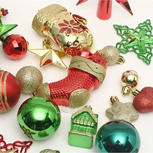 JIALEIXI 138PCS Christmas Ornaments Set, Shatterproof Hanging Decorations Assortment Set for Xmas Tree, Reusable Balls Ornaments for Home Holiday, Party, Wedding Decor, Red/Gold/Green.