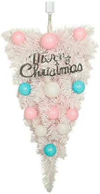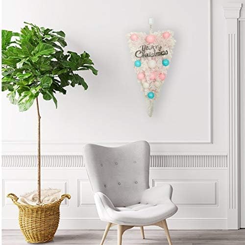 JJKFQ Christmas Macarons Ball Decoration Pink Upside Down Tree Pendant with Light for Home Door Wall Hanging Holiday Ornaments