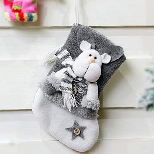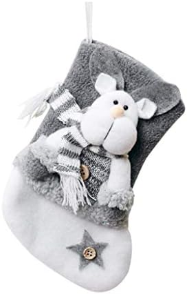 JJKFQ Linen Christmas Socks Home Decoration Christmas Tree Ornaments Gray Santa Claus Snowman Bag Home Party Decor (Color : C)