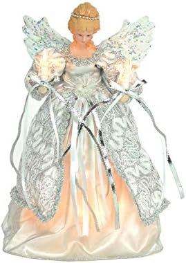 JJ’S HOLIDAY GIFTS offers this 12” White/Silver Fabric 10-Light Angel Treetopper which is an excellent addition to anyone’s Christmas Décor Collection.CLASSIC LIGHT ILLUMINATION: These 10-Light lit Angel Treetoppers glow with the vintage Amber LightCan be used as an Treetopper OR Table PieceTRADITIONAL HANDICRAFT: Handmade Angel who’s dress is handsewn and