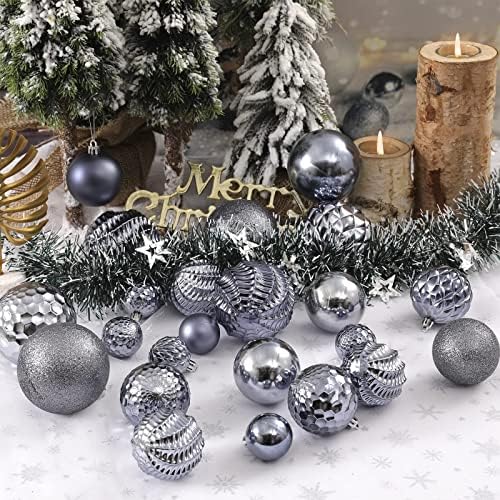 Jorysics Christmas Balls Ornaments -36pcs Shatterproof Christmas Tree Decorations with Hanging Loop for Xmas Tree Wedding Holiday Party Home Decor,6 Styles in 3 Sizes(Grey)