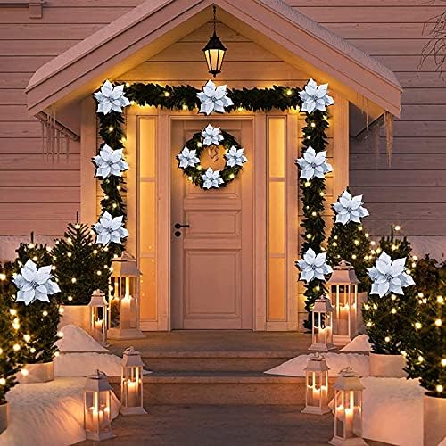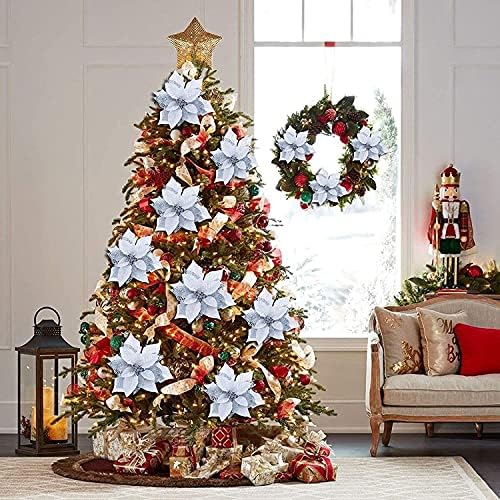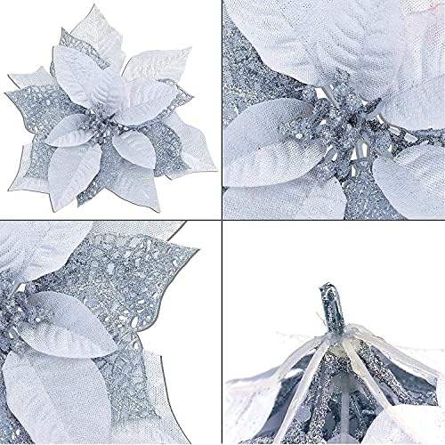 JYHZ Christmas Decorations, 12 Pieces of Christmas Glitter Poinsettia Rayon Flowers, Golden Christmas Tree Garland Decorations, Holiday Decorations (Golden) (Color : Sliver)