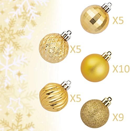 KI Store Christmas Ball Ornaments Gold 34pcs Small Shatterproof Christmas Tree Balls for Xmas Holiday Wedding Party Decoration, Tree Ornaments Hooks Included 1.57-Inch