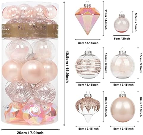 KI Store Christmas Balls Blush Pink and Clear 36pcs Shatterproof Christmas Tree Ornaments 4-Inch 3.15-Inch and 2-Inch Christmas Tree Decorations Set