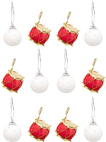Kikajoy 12 Piece Set Christmas Tree Ornaments 1.18″ Mini Shatterproof Holiday Ornament Shining Balls with Red Drums for Christmas Decorations
