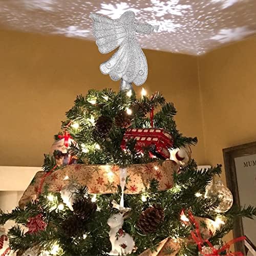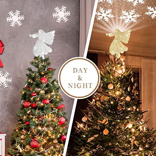 Kikioo Angel Christmas Tree Topper, Christmas Tree Topper Projector Lighted Ornaments, Snowflake Lights 3D Christmas Tree Decoration, for Indoor Xmas Decor Gifts