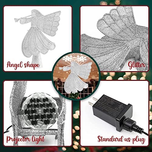 【Safe & High Quality】Dimensions of angel tree topper: 26cm*19cm*10cm. It is made of metal and premium plastic to ensure its quality and weight.【Snowflake Effect Design】Enjoy as beams of numerous snowy spots and snowflake high-definition effects light from Christmas tree topper shine out from the moving center of the star and