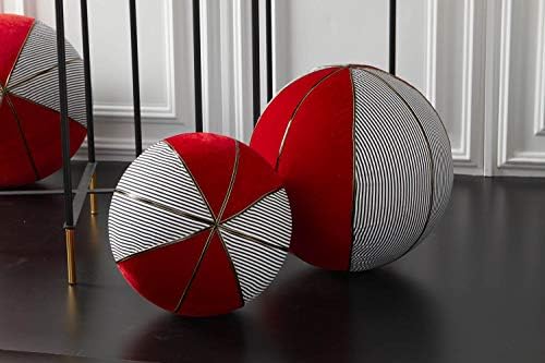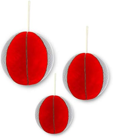 K&K Interiors 54210B Set of 3 Red Velvet w/Black & White Stripe Ornaments