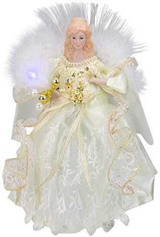 Kurt Adler 12″ Gold and White LED Lighted Fiber Optic Angel Christmas Tree Topper