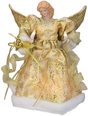 Kurt Adler 12″ Lighted Gold Angel with a Snowflakes Christmas Tree Topper – Clear Lights