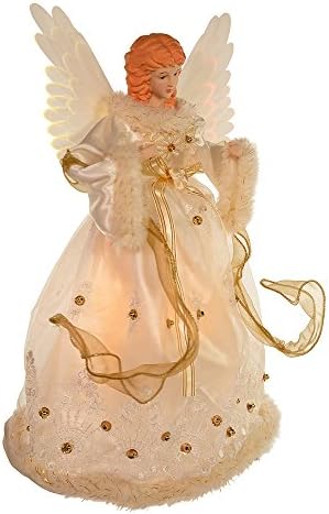Kurt Adler 14-Inch Ivory and Gold Fiber Optic Animated Angel Treetop (UL2184)