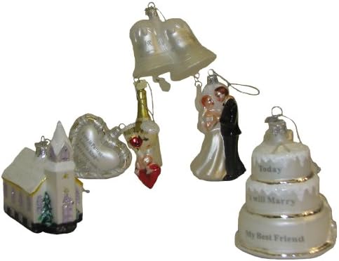 Kurt Adler Noble Gems Glass 6-Piece Wedding Ornament Gift Box Set, 3-Inch to 4.5-Inch