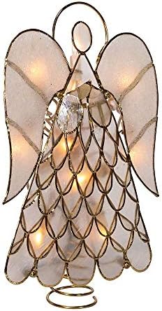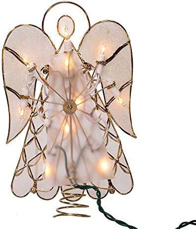 This 9. 5-Inch UL 10-Light Capiz Angel Treetop from Kurt Adler is a whimsical and perfect addition to any holiday décor! Made of capiz, brass, metal, and plastic