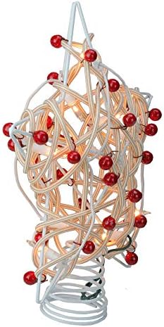 Kurt S. Adler Birch Holly Berry Rattan Star Lighted Christmas Tree Topper 11 Inch UL4295 New
