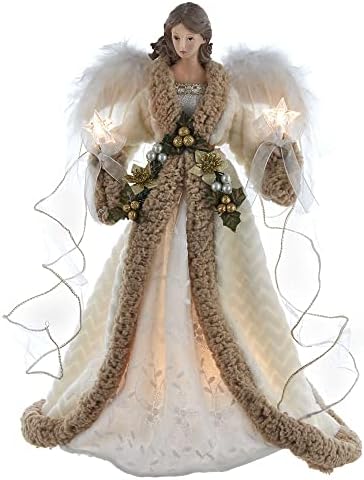 This Kurt S. Adler UL 10-Light 16-Inch Sage Casual Angel Tree Topper is a beautiful, classic way to accent the lighting and décor of your Christmas tree. This angel is wearing an intricately designed sage colored gown with sequined accents and white wings. It is illuminated by 10 UL listed clear incandescent lights from within.