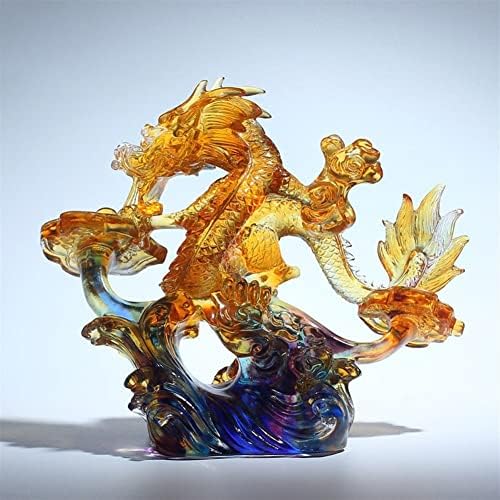KUYIN Glazed Decoration Glass Arts Shuanglong Play Beaded Ornaments Crystal Crafts Villa Atmosphere Living Room Home Decoration Lettering Crafts