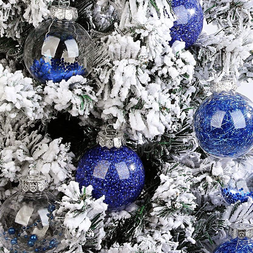 Lanpn Christmas Ornaments Set for Tree Decorations, Shatterproof Unbreakable Clear Plastic Balls Baubles Bulk for Xmas Decor (Blue, 2.8″/24pcs)
