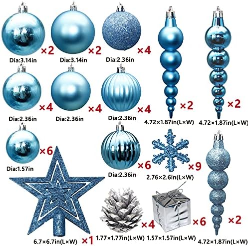 LAWOHO 58 ct Christmas Ball Ornaments Shatterproof Seasonal Decorations for Xmas Tree, Suitable for Christmas Holiday Wedding and Party (Blue & Silver)