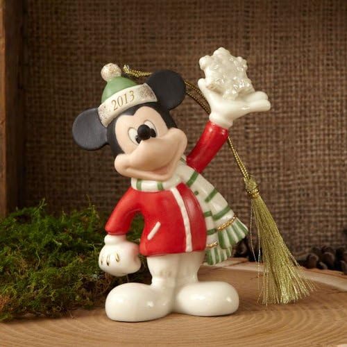 Mickey Mouse arrives for 2013 with a sparkling snowflake. His Santa hat is year dated. Crafted of hand-painted Lenox ivory porcelain accented with gold. Includes gold tassel cord for hanging. Under license by Disney, which has reviewed this product for quality and authenticity. Crafted for Christmas 2013 – quantity limited.