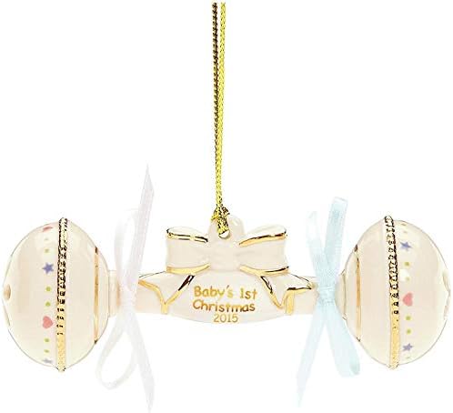 Dated for 2015, this delightful collectible celebrates baby’s first holiday season while adding fun to your decorating. Crafted of Lenox porcelain, this ornament includes a lustrous gold rope with tassel for hanging and comes beautifully packaged in an iconic seasonal red box to make a perfect gift. Crafted of Porcelain Includes Gold Rope with Tassel for hanging