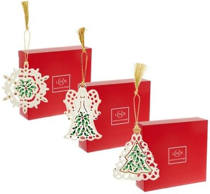 Lenox Holiday Porcelain Ornaments Set of 3, Angel, Tree and Snowflake