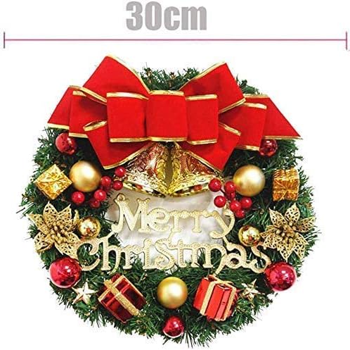 ✱Christmas wreath decoration garland 30CM, beautiful Christmas element garlands decorated with big red bows, golden bells, reindeer, red balls, flowers, green pine branches and Merry Christmas lettering, adding joy to Christmas