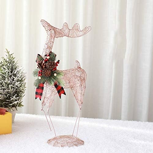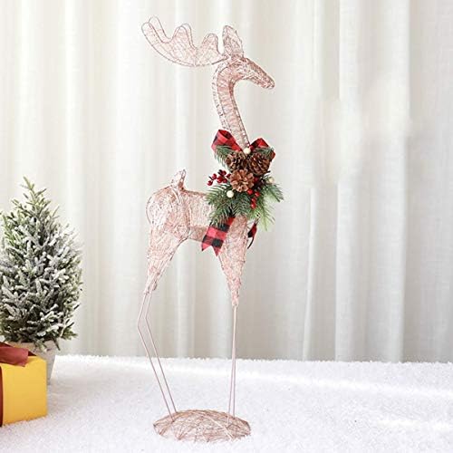 LIUSHI Rose Gold Christmas Deer Iron Sculpture Decoration elk Figurines Metal Rattan Woven Reindeer Bright Glowing Christmas Deer Ornaments,S+L