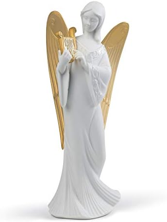 LLADRÓ Celestial Melody Angel Christmas Ornament. Golden Lustre. Porcelain Tree Topper Christmas.