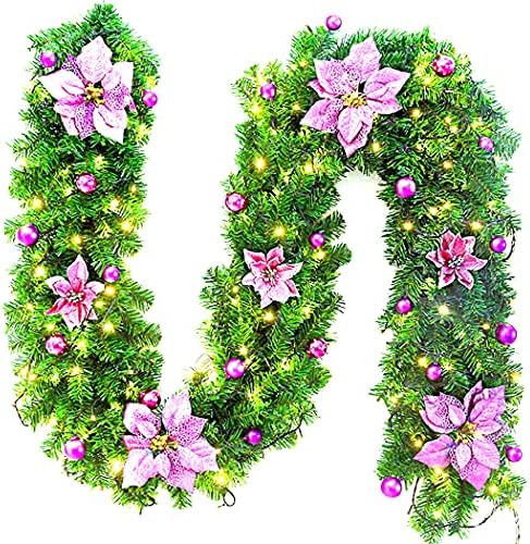 Lnrueg Decorative Hanging Ornaments Outdoor Indoor Door Realistic Christmas Garland Artificial Long 8.86ft Professional Realistic Garland with Light
