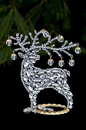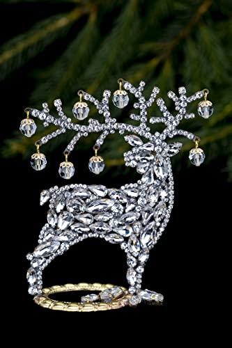 Delicate Christmas Reindeers made with clear coloured rhinestone crystals. Antlers are finished off beautifully with Clear coloured rhinestone crystals. They come in a set of 2. Size: 3,6×4,7×1,4 inch – one reeindeer (9,3x12x4 cm). Unique Christmas Reindeers. Hand made bijoux. Czech rhinestones. Set in non-plated brass. We follow the spectacular craft bijoux history of our region. We use old handmade techniques and use only the finest material and best quality crystal’s. If there is an item that you are interested in but would like some changes made or something unique added, please do not hesitate to contact us. We are able to meet the demanding requirements of designs (figures up 1m high). We are able to guarantee FREE delivery to USA within max. 10 working days via FEDEX. Free worldwide economical transport for the rest of world may take up 2 to 30 days.