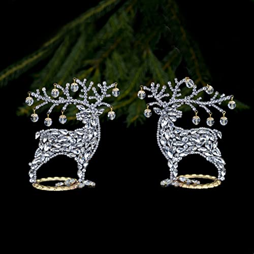 Delicate Christmas Reindeers made with clear coloured rhinestone crystals. Antlers are finished off beautifully with Clear coloured rhinestone crystals. They come in a set of 2. Size: 3,6×4,7×1,4 inch – one reeindeer (9,3x12x4 cm). Unique Christmas Reindeers. Hand made bijoux. Czech rhinestones. Set in non-plated brass. We follow the spectacular