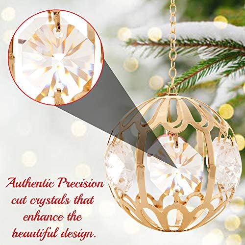 Matashi 24K Gold Plated Crystal Studded Gold Christmas 1.5″ Ball Hanging Ornament, Luxury Rich Decorations Tree Balls for Holiday Wedding Party Decoration, Gift Boxed with Storage Pouch