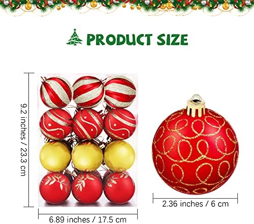 MCEAST 24 Pieces Christmas Ball Ornaments Painting & Glittering Christmas Tree Pendants Shatterproof Decorative Baubles in 8 Patterns for Christmas Tree Decorations, Red and Gold