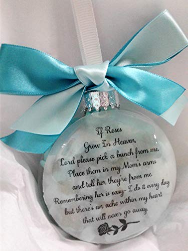 Mom Memorial Christmas Ornament Loss of Mother Keepsake Sympathy Gift with Light Aqua Roses