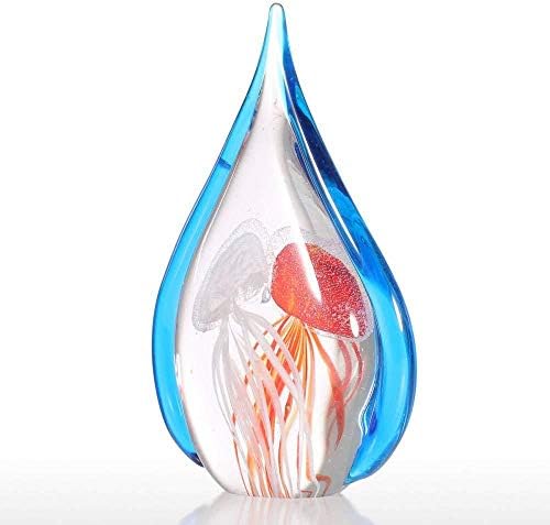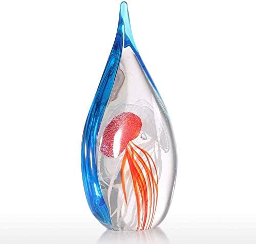 Ornaments Statues Sculptures Blue Border Teardrop-Shaped Glass Model Teardrop Jellyfish Gift Glass Ornament Handblown Home Decoration Red and White Ornament