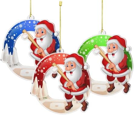 Pack of 10x Christmas Tree Santa Baseball Ball Ornaments 3″ | Bulk Buy Combo Deal | Made from ¼ Thick Printed Acrylic | Mixture of Red, Green & Blue | Full Colour Double Sided Print