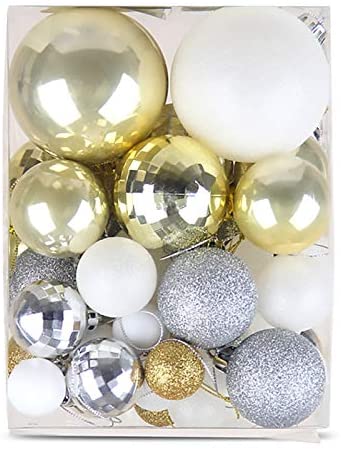 [More] Price: (as of – Details) Feature:【ORNAMENT SIZE】 2.36″(6CM)1.57″(4CM)1.2″(3CM) Three sizes Variety of Shapes Plastic Christmas Balls . Perfect fit for any normal size tree.Tree balls