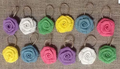 [More] Price: (as of – Details) Twelve Burlap Flower Ornaments – Two Each of White, Pink, Baby Blue, Lavender, Lime Green, and Yellow with Jute Hanging