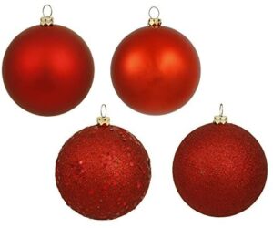 [More] Price: (as of – Details) 4″ Red 4-Finish Plastic Ornament Set of 18 per Acetate Box. Shatterproof, Matte/ Shiny/ Sequin/ Glitter Finishes, Strings, Secured Caps