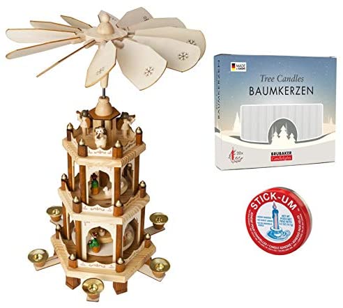 [More] Price: (as of – Details) This set consist of 3 items: 1x BRUBAKER Christmas Pyramid, 18 Inches, 3 Tier 1x BRUBAKER White Tree Candles 1x
