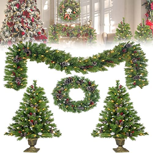 [More] Price: (as of – Details) [CLASSIC CHRISTMAS ELEMENTS] 4-piece set of artificial Christmas trees, including garlands, rattans and two Christmas trees. There are small bead