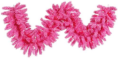 [More] Price: (as of – Details) Vickerman 9′ x 14″ Flocked Pink Artificial Christmas Garland with 210 PVC tips, pink flocking and 100 Dura-Lit pink lights