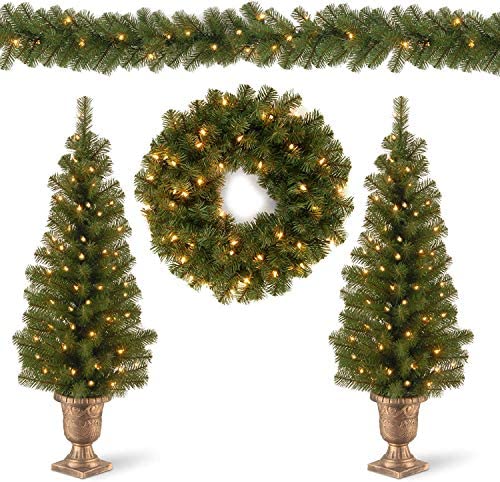 [More] Price: (as of – Details) These Artificial Christmas assortments include a set of entrance trees, a wreath and a garland pre-strung with LED white lights.