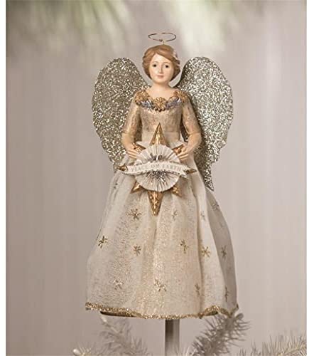 [More] Price: (as of – Details) An elegant angel with fabric accents and intricate detailing, this gold and silver tree topper holds a metallic gold star