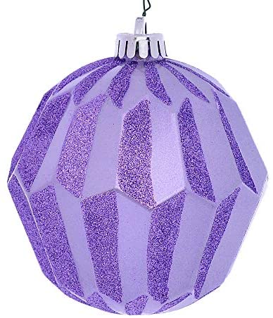 Price: (as of – Details) Vickerman 5″ Lavendar Glitter Faceted Ball Christmas Ornament 4 Pack. This ornament is made from shatterproof plastic and features a